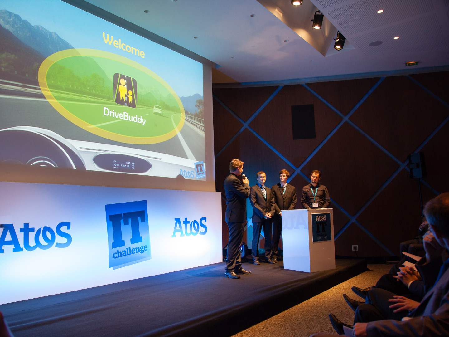 Atos ist ein internationaler IT-Dienstleister mit Hauptsitz in Bezons bei Paris. Das Unternehmen bietet transaktionsbasierte Hightech-Services, Beratung - und Technologie-Services, Systemintegration sowie Outsourcing-Dienstleistungen. Ziel der Atos IT-Challenge ist es Innovationen zu fördern und Studenten mit ihren Ideen zu unterstützen. Bei diesem internationalen Wettbewerb belegte DriveBudddy den zweiten Platz. Hier wurde DriveBuddy für seine erfolgreiche Umsetzung eines Fahrerassistenzsystems auf einem Smartphone premiert. Link: Atos IT Challenge